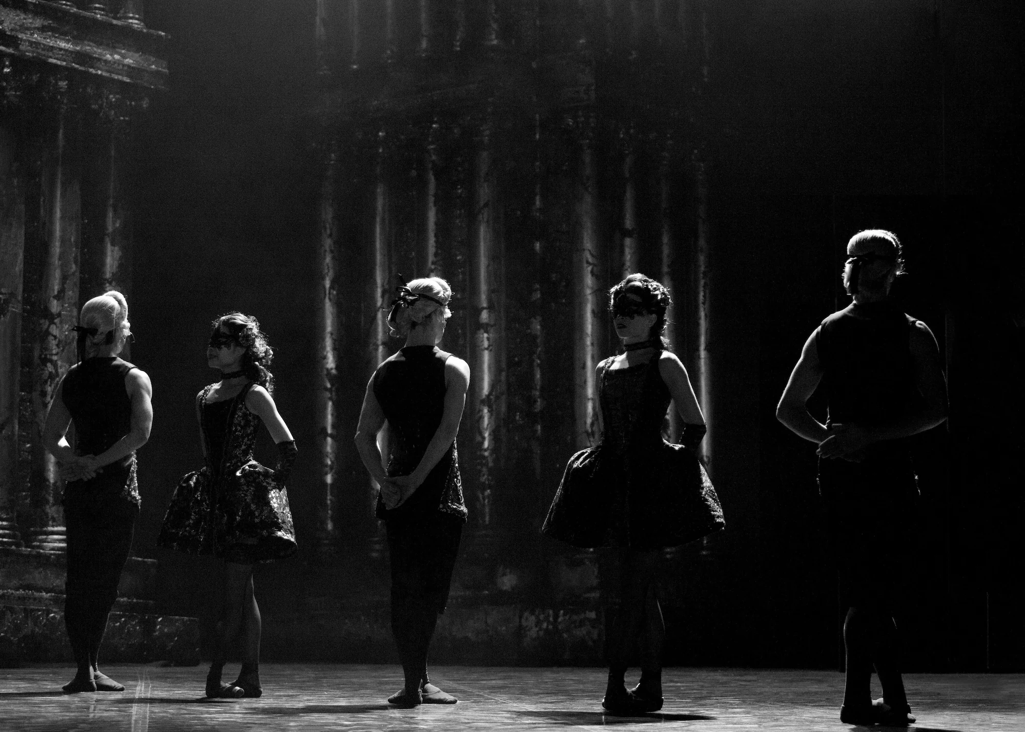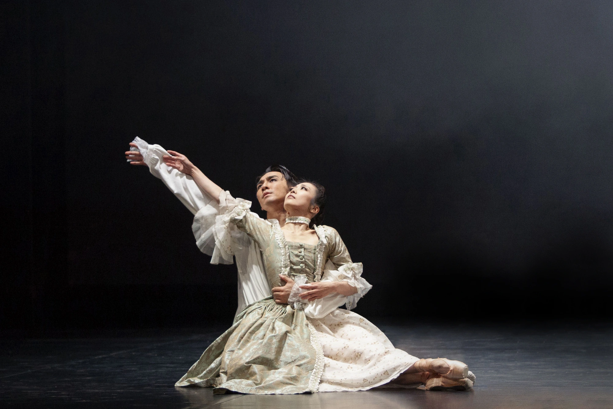 Kenny described this pas de deux in Act One with Bellino and Casanova as about masks - hiding the truth - and trust. âMasking and hiding was definitely a strong motif throughout the ballet. Bellino is masquerading as a Castrato, hiding her true self which is what fascinates Casanova when they meet. Movements that hide/reveal, open/close, trust/guard became an important springboard for creating those duets.â