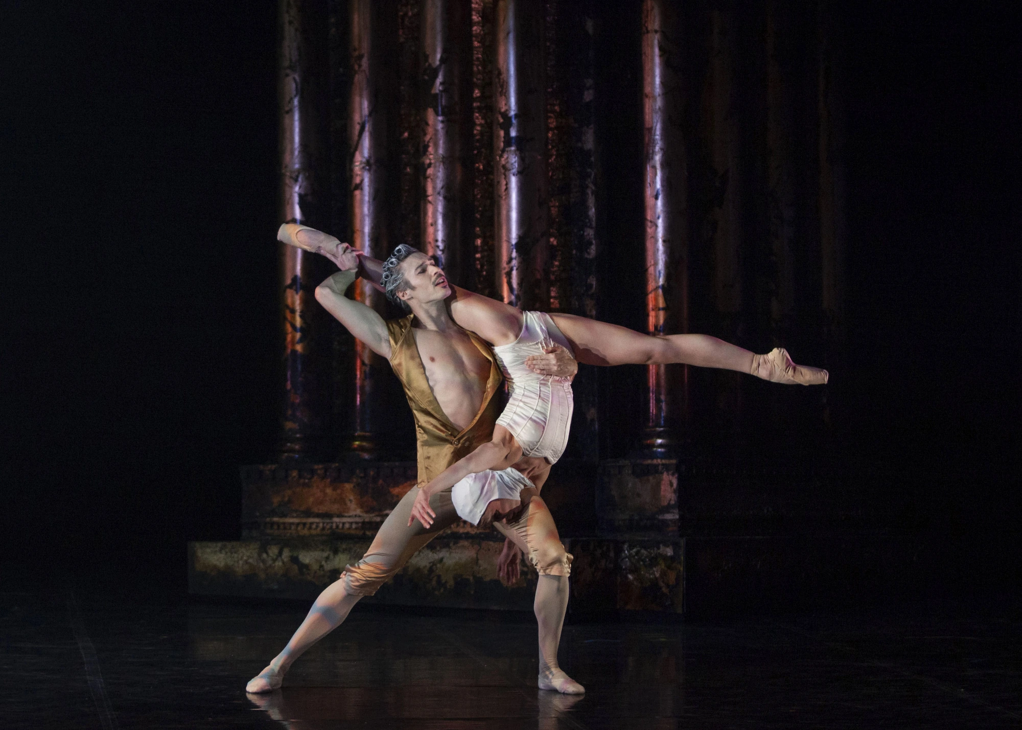 Des Grieux performs some of the most difficult solos and four pas de deux. Act III is a physically and emotionally exhausting finale, and MacMillan pushed it to extreme, with strenuous lifts and body flips conveying their emotional desperation.