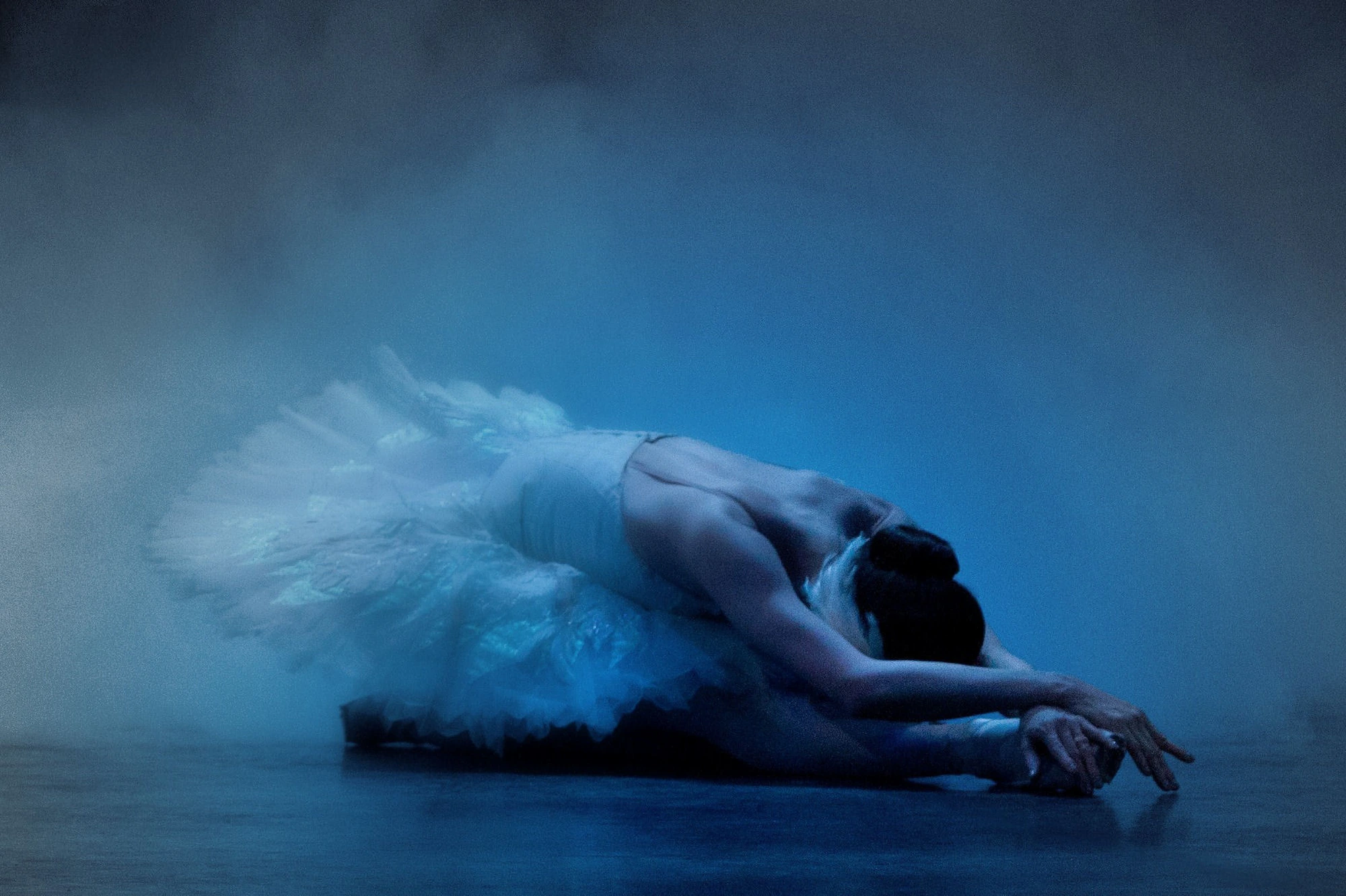 Photographing this ballet began an ongoing Study of Swans for me. I find it fascinating how the dancers embody the swanâs long neck with the placement of their arms and hands and how they move so gracefully together. The most beautiful image I attempt to capture, is when the dancer bends over on the floor, with one leg tucked beneath her the other extended in front, with her arms crossed over her foot and her head tucked down like a sleeping swan resting on the water. When the stage fills with dry ice the stage floor transforms into the lake, and the effect is so achingly beautiful and there is a desire to drown in Tchaikovskyâs score.